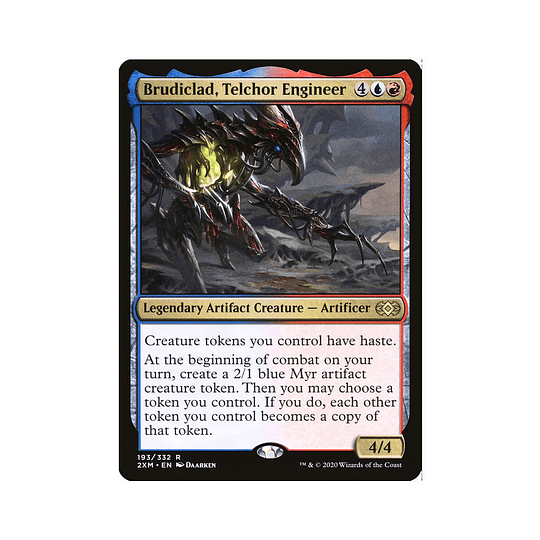 At the beginning of combat on your turn, create a 2/1 blue Myr artifact creature token. Then you may choose a token you control. If you do, each other token you control becomes a copy of that token.