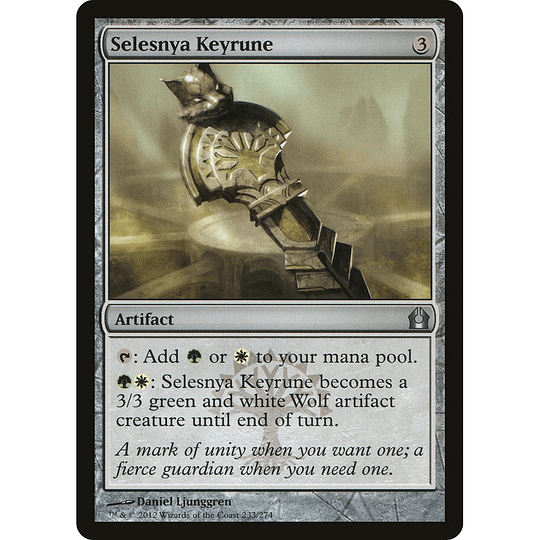 {T}: Add {G} or {W}.{G}{W}: Selesnya Keyrune becomes a 3/3 green and white Wolf artifact creature until end of turn.